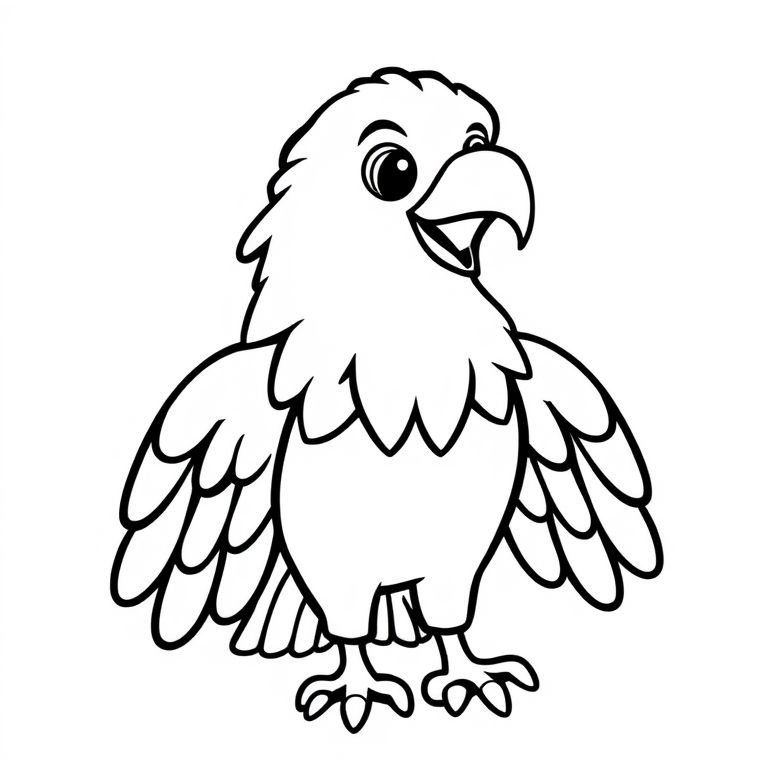 독수리는 힘차게 하늘을 나는 맹금류예요. 뾰족한 부리와 날카로운 발톱을 가지고 있어서 먹이를 잡는데 아주 능숙하답니다. 넓은 날개를 펼치고 하늘을 나는 모습은 정말 웅장하고 멋있죠! 독수리의 깃털 색깔은 다양하며, 서식지에 따라 다른 모습을 보여준답니다. 이 색칠 도안을 통해 독수리의 다양한 모습을 상상하며 색칠해보세요.